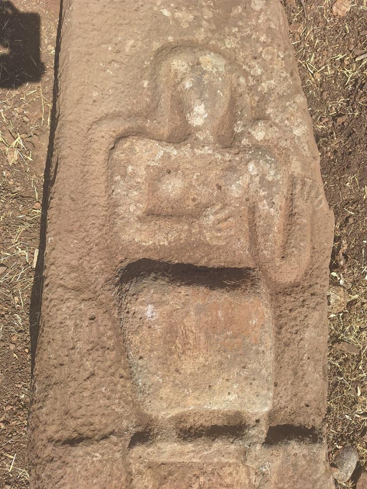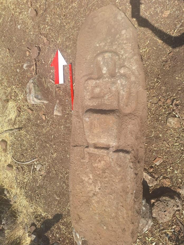 Tanım | Bazalttan yapılmış, cepheden oturur vaziyette sağ eli sol göğsünde, sol eli ise havada durur pozisyonda kadın figürüdür. Göğüsleri belirgin olup yüz hatları tam belli değildir. Stelin üst kısmında tahribattan dolayı ne olduğu tespit edilemeyen bir kabartma vardır. Figürün ayaklarının altında, ayakları ters yöne bakar halde düz bir platform bulunmaktadır. Stelin altında ve yan kısımlarında herhangi bir yazı, kabartma, bezeme ve süsleme mevcut değildir. |