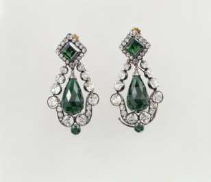 Marie-Louise’in takı takımına ait zümrüt küpe çifti Tür: Mücevher, takı, tılsım; değerli taş ve sert taş Yapım yeri: Paris (Fransa → Île-de-France bölgesi) Yapım tarihi: 1810 Dönem: Birinci İmparatorluk (1804–1814) (Batı → Çağdaş dönem) Malzeme: Zümrüt, altın, elmas Yükseklik: 5,7 cm Genişlik: 3,1 cm | Denon, (Oart), Salon 705 – Apollon Galerisi. Merkezi Vitrinler. Elmaslar Vitrini. İmparatorluk Vitrini. | İkisinden biri mevcut | 1 |