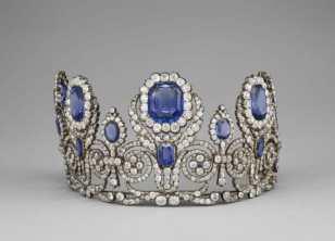 | OA11030 Anonim, Kuyumculuk ürünü Kraliçe Marie-Amélie ve Kraliçe Hortense’in mücevher koleksiyonuna ait taç. Mücevher, Takım, Tılsım; Değerli Taş, Sert Taş; Taç. Yaratım/Üretim/İcra Yeri: Paris (Fransa > Ile de France = Ile de France) Yaratım/Üretim Tarihi: 1800-1825 Birinci İmparatorluk (1804-1814); ) (Batı → Çağdaş dönem); Restorasyon (1814–1830) (Batı → Çağdaş dönem) Malzeme: Elmas ve Safir. Yükseklik: 6,2 cm (Aksesuar ile birlikte) Genişlik: 10,7 (Aksesuar ilE Birlikte) | Denon, Oart, Salon 705 – Apollon Galerisi Merkezi Vitrinler. Elmaslar Vitrini. İmparatorluk Vitrini. | Çalındı | 1 |