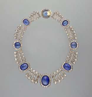 | OA11031 Kraliçe Marie-Amélie ve Kraliçe Hortense’in safir takı takımına ait kolye Mücevher, takı, tılsım; değerli taş ve sert taş; kolye Yapım yeri: Paris (Fransa → Île-de-France bölgesi) Yapım tarihi: 1800 – 1835 Dönem: Birinci İmparatorluk (1804–1814) (Batı → Çağdaş dönem); Restorasyon (1814–1830) (Batı → Çağdaş dönem) Malzeme: Elmas, safir Yükseklik: 3,4 cm Genişlik: 40 cm | Denon, (Oart), Salon 705 – Apollon Galerisi. Merkezi Vitrinler. Elmaslar Vitrini. İmparatorluk Vitrini. | Çalındı. | 1 |