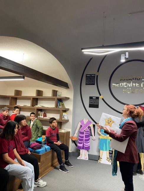 Müzelerde gerçekleştirilen eğitim etkinlikleri kapsamında, 10.12.2025 tarihinde Ankara Anadolu Medeniyetleri Müzesinde, Etimesgut Samiye Naim Vakfı Ortaokulu 6. sınıf öğrencilerinden oluşan 25 kişilik grup ile Taş Eserler Salonunda tanışma ve müze tarihçesi üzerine sohbet gerçekleştirilmiş; ardından müze gezisi düzenlenmiştir. Gezi sırasında ara-bul etkinliği yapılmıştır. Müze eğitim atölyesinde ise Eşek Kulaklı Midas draması ve sikke basımı etkinlikleri ile eğitim tamamlanmıştır. Eğitim ve atölye çalışmaları, Anadolu Medeniyetleri Müze Müdürlüğü uzmanları Mine Çifçi ve Nurgül Kocakahya Yıldız eşliğinde yürütülmüştür.